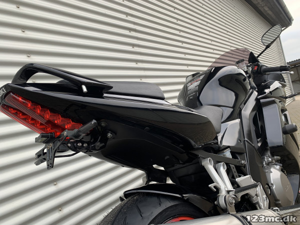 Mørk kåbeglas, kort nummepladeholder, crashpads, mini led-blink "running led", indfarvet Hugger / Bagskærm, Leo Vince bolt-on udstødning med E-godkendelse.