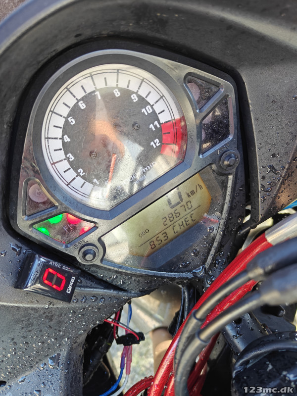 Der er tale om en SV1000S fra 2005 (sort stel, hvilket ville sige forbedret ECU og en masse andre forbedringer) som kun har gået 28.xxx KM