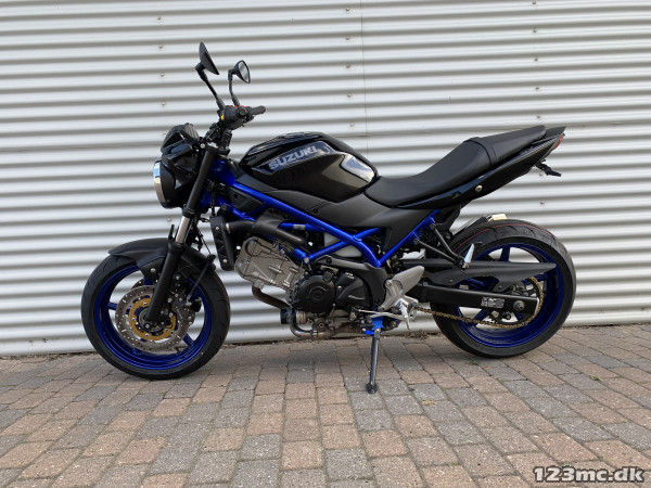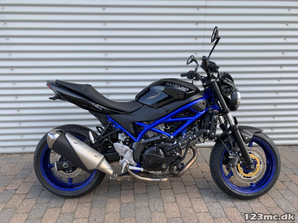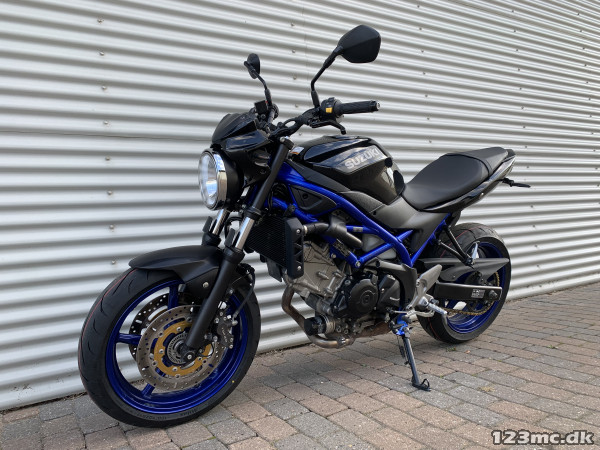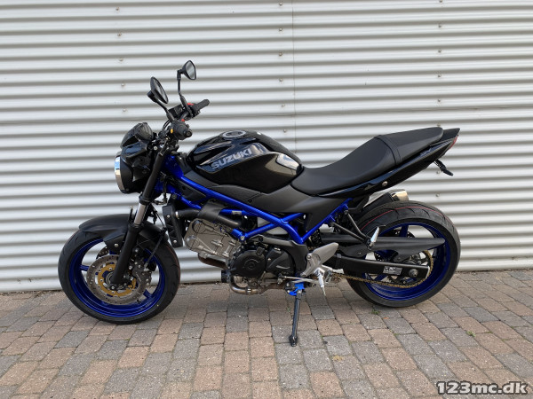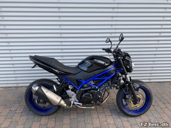 SV650 original i farven sort i sort med blå stel og fælge. SV650 er med sin V-Twin motor en køreoplevelse fra start til slut.