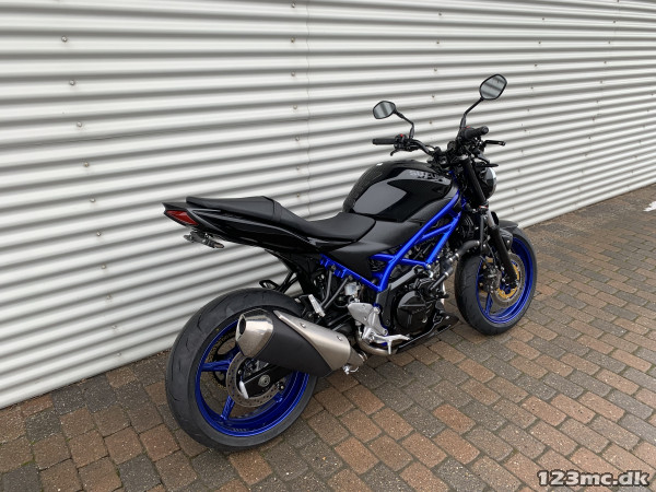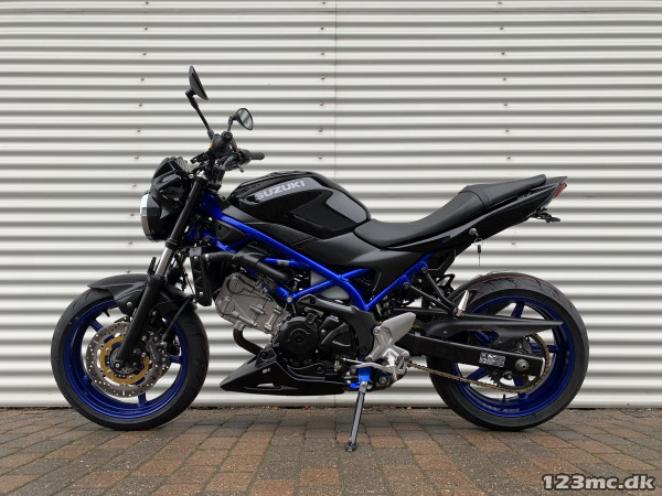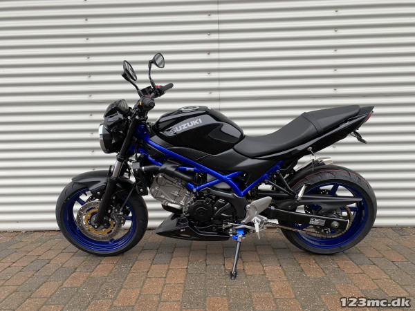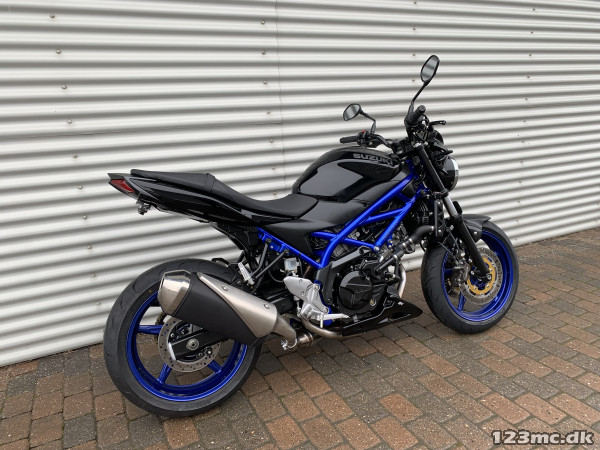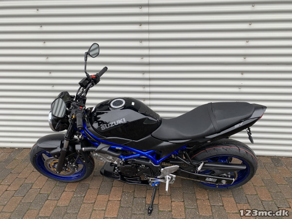 SV650 original i farven sort i sort med blå stel og fælge. SV650 er med sin V-Twin motor en køreoplevelse fra start til slut. Flot og velholdt cykel. Noget af det mest stabile mekanik man kan købe på 2-hjul :-). Virkelig letkørt cykel med godt træk i. ABS-Bremser, Gearindikator. A2 kørekort muligt med drosling.