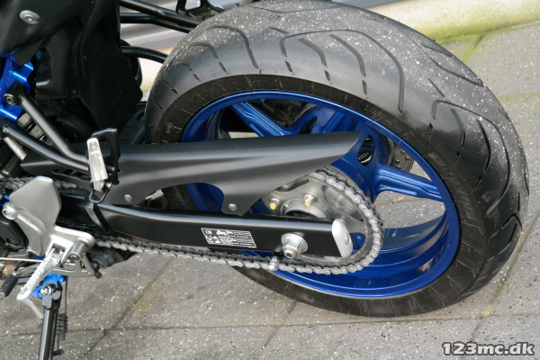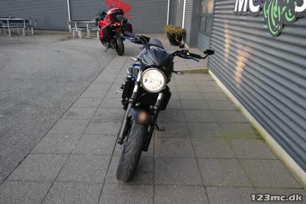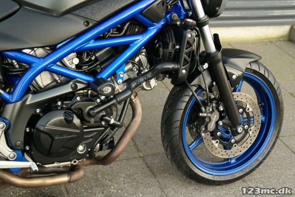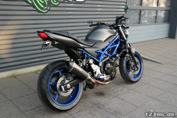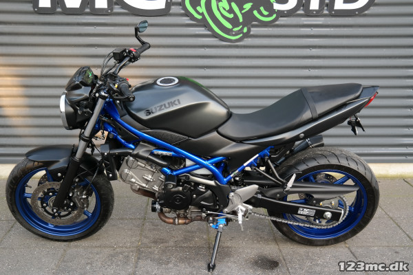 SV650 original i farven sort i sort med blå stel og fælge. SV650 er med sin V-Twin motor en køreoplevelse fra start til slut.