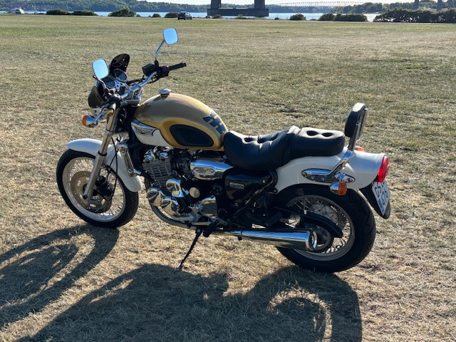Det er gennem renoveret. Karburator er med nye pakninger og svømmere og en ny benzin hane. Den står knivskarp og har ingen ridser. Meget lavt km antal. Jeg købte den i Tyskland i 2017, hvor den i 10 år havde stået gemt væk i en lade i Lubeck. Gennem istandsat og klar til eventyr. Eller bare en søndagstur.