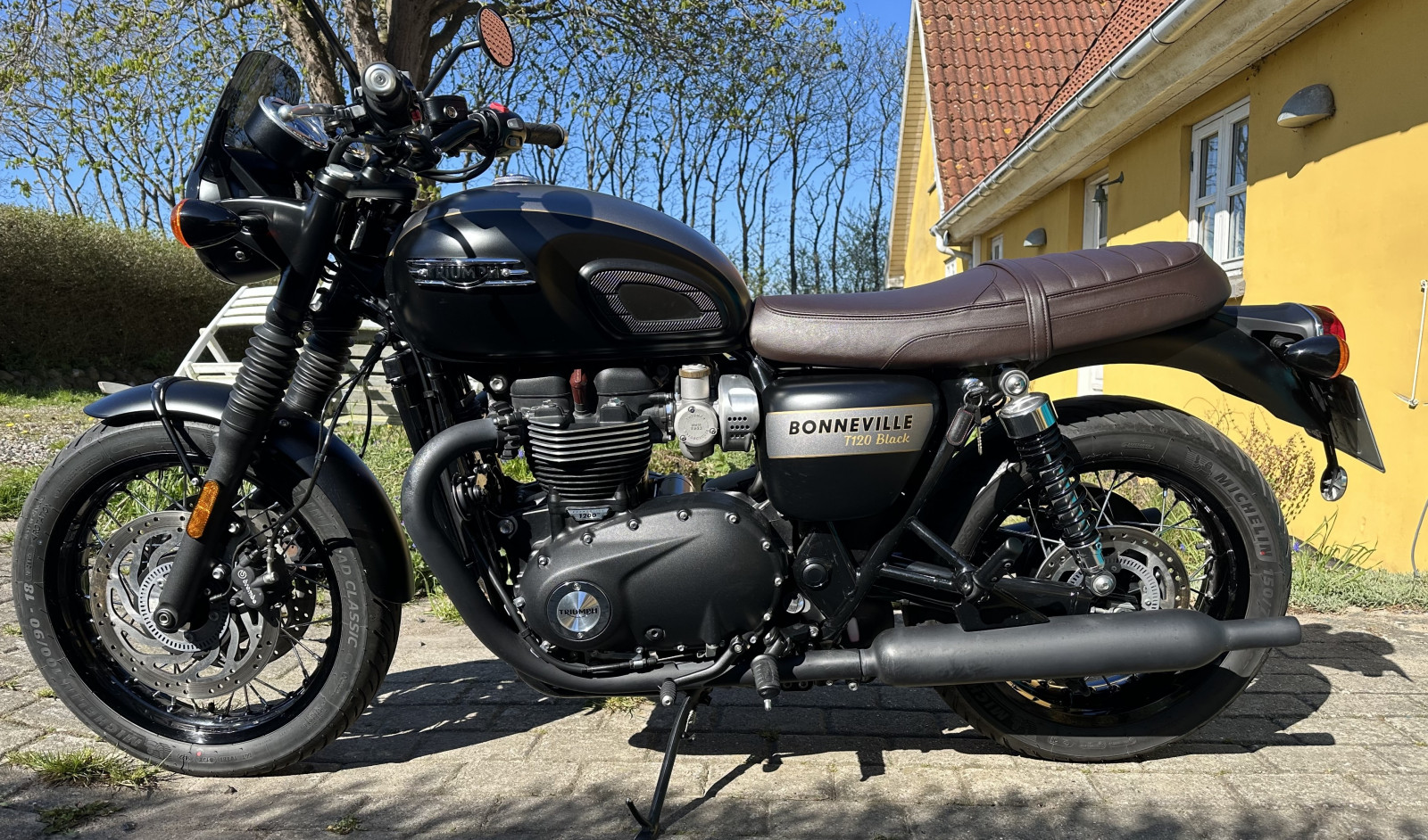 Bonneville T120 Black in perfect condition. Complete servicebook, bike has been in dry and warm garage, no signs of use at all. Small Triumph windscreen installed. I am selling it because it has just been sitting unused. (Have another bike). I also have some driving equipment that we can discuss. Bike is in Syd-Sjaelland