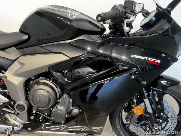 Triumph Daytona 660 2026 er en moderne sport MC med den karakteristiske trecylindrede motor, som giver en stærk og lineær kraftlevering – perfekt som brugt MC til salg hos Aalborg MC. Med 94 hk og et let, velafbalanceret chassis får du en sportsmaskine, der både er sjov på landevej og stabil ved høj fart. Modellen kombinerer klassisk Daytona-design med moderne elektronik som køreprogrammer og traction control. En oplagt mellemklasse sportbike til både nye og erfarne kørere, der ønsker performance og køreglæde i hverdagen.