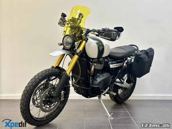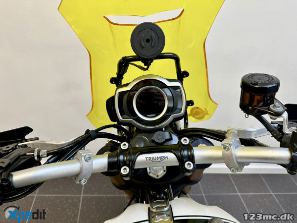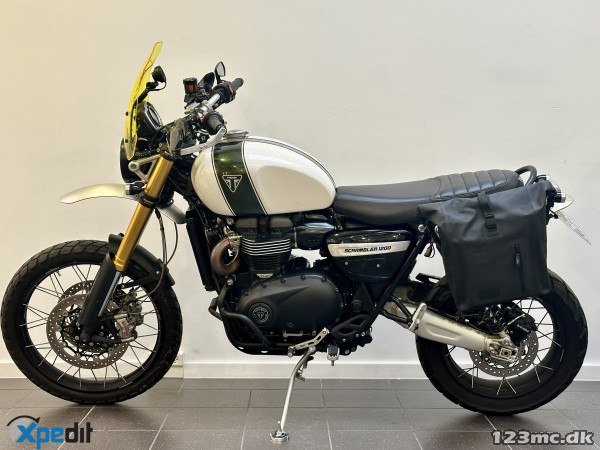 Triumph Scrambler 1200 XE -- Farve: Hvid -- Sags nr. Jonathan -- Denne motorcykel har alt i udstyr: ¤ Original kort nummerpladeholder ¤ 6 Køremodes ¤ Fartpilot ¤ Håndtagsvarme ¤ Små originale LED Blinklys ¤ LED baglygte ¤ LED forlygte ¤ Nøglefri betjening ¤ Justerbar Öhlinsaffjedring ¤ Original sidestøttebensplade ¤ Vandtæt sidetaske fra Unit Garage ¤ Sorte originale motorbøjler ¤ TFT-Skærm m/Bluetooth ¤ Vindskærm fra Unit Garage ¤ Barkbuster håndbeskyttere ¤ Rally Moto sidespejle ¤ Original forhøjet forskærm ¤ Originale mørke dæksler ¤ SP-Connect holder m. vibrationsdæmper og strøm ¤ Nyserviceret ¤ Nyt batteri ¤ Nyt koblingskabel ¤ Alle originale dele følger med