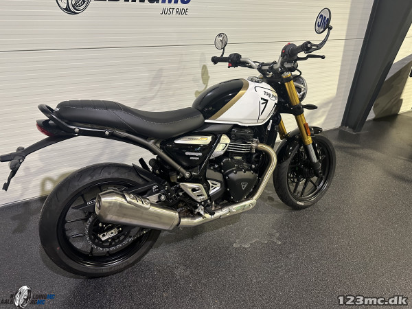 Triumph Speed 400 2026 ny til salg hos Kolding MC er en moderne standardmotorcykel med autentisk britisk design, der kombinerer klassisk roadster-stil med letkørt ydeevne og moderne udstyr. Den smidige 398 cc enkeltcylindrede motor giver ca. 40 hk og godt moment, hvilket gør cyklen velegnet til både daglig bykørsel og weekendens ture på landevejen. Speed 400 er let at komme til med en komfortabel, oprejst kørestilling, lav sædehøjde og en let håndtering, så både nye og erfarne ryttere kan nyde turen. Med LED-lys, Bosch EFI, traction control og moderne instrumentering får du både sikkerhed og komfort i en elegant pakke med klassisk Triumph karakter.