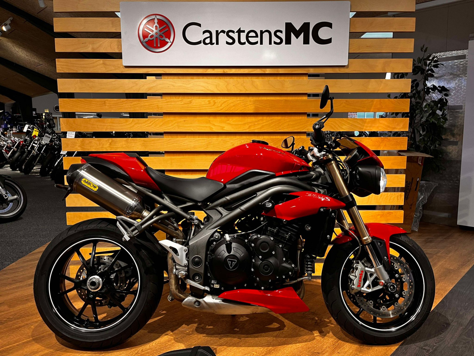 Præsentere en Triumph Speed Triple S, fra år 2016. Denne Speed Triple har kørt 26.650 km, der står i en flot rød lakering og med en masse ekstra udstyr.