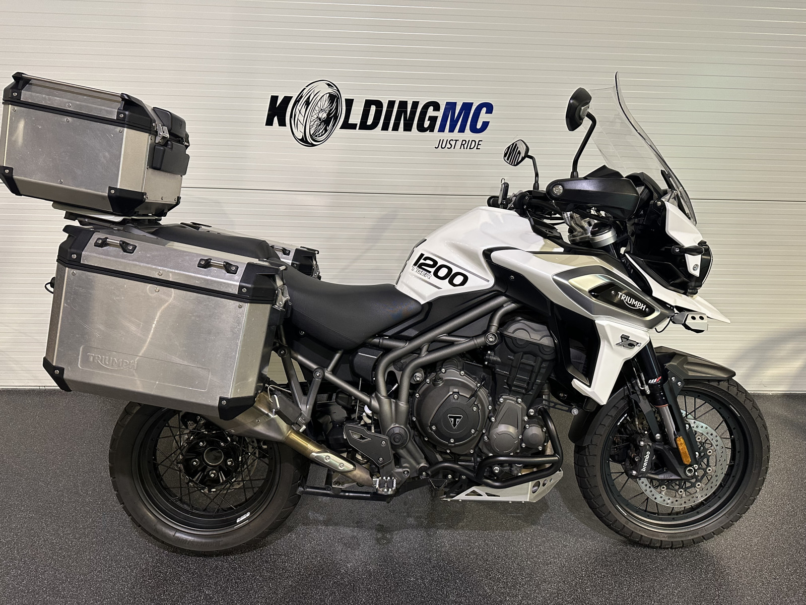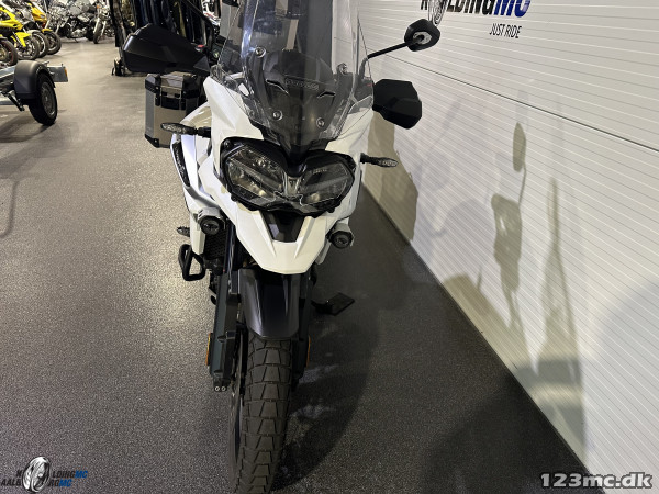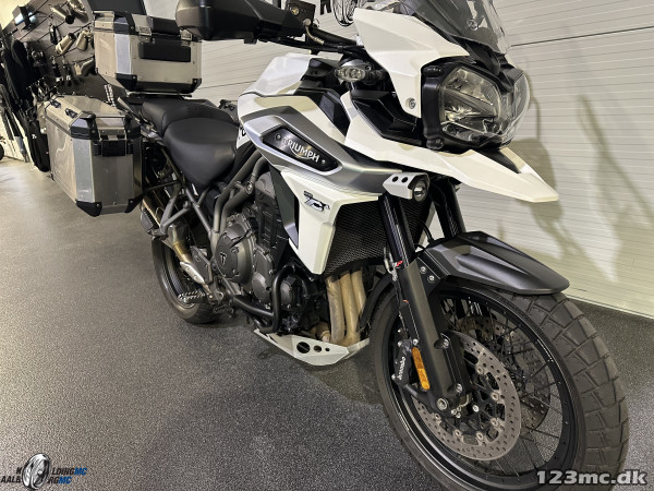 så fik vi denne meget flotte og velholdte Triumph i butikken, den står i den meget flotte alpine hvid og er monteret med alt det udsyr man kan tænke sig, men kom ind i butikken og se denne flotte Triumph