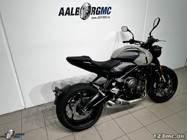 Triumph Trident 660 er en moderne naked bike med en karakterfuld trecylindret motor og lette, smidige køreegenskaber. Den 660 cc triple-motor leverer stærk og jævn kraft, som gør modellen velegnet til både bykørsel, pendling og aktive ture på landevejen. Trident er kendt for sin gode balance, lave vægt og komfortable kørestilling, som giver en tryg og underholdende køreoplevelse. En oplagt mulighed for dig der søger en Triumph Trident 660 brugt MC med sporty design og moderne teknologi – til salg hos Aalborg MC. Årgang: 2026 Effekt / cc: 95 hk / 660 cc Vægt: 189 kg (kørklar) Udstyr / ekstra: ABS, traction control, ride modes, TFT/LCD display, LED-lys, assist & slipper clutch.