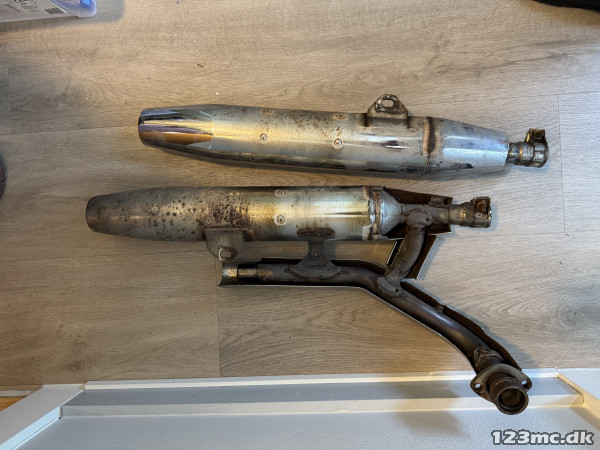 Sæt originale Yamaha udstødninger afmonteret fra Yamaha XVS650 DragStar.