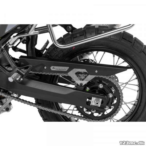 Tourtechs kædebeskytter til Tenere 700 er lang mere robust end den originale af plastik fa Yamaha. Kædebeskytteren er lavet i rustfrit stål og aluminium, som gør den både robust og letvægt.