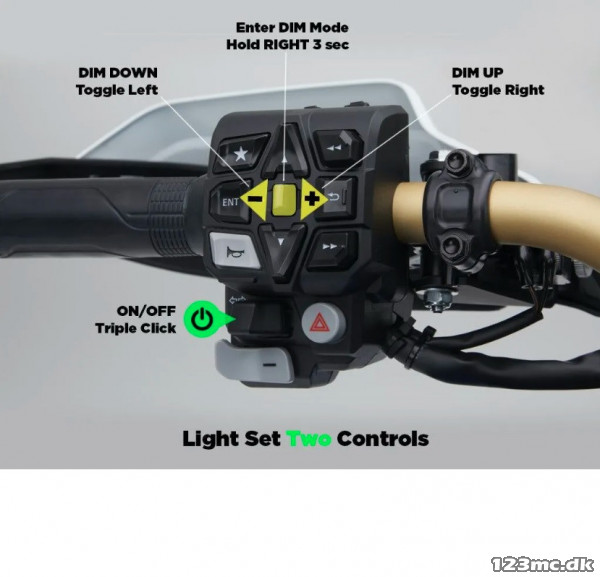 ON/OFF og dæmpning: Uafhængig styring af to sæt ekstralys med justerbar lysstyrke til både dag og nat.