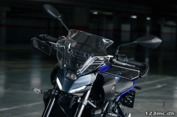 Elegant mellemhøj skærm i klar polycarbonat, designet til Yamaha MT‑09 (fra 2024) og MT‑07 (fra 2025)