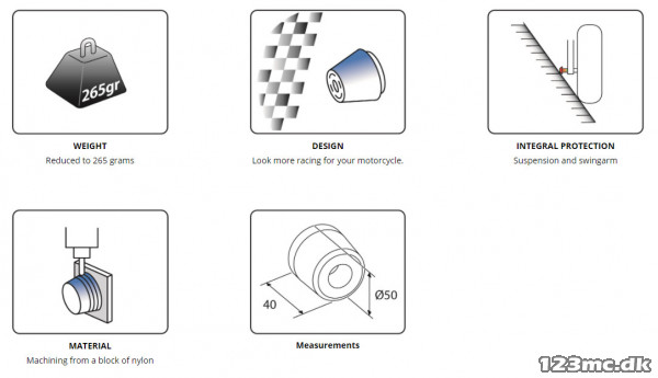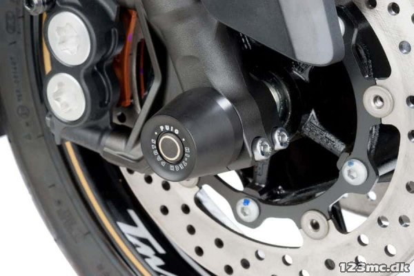 Akselbeskytteren fra Puig beskytter både aksler, forgaffel og svingarm. Beskytterne er fræst i det utroligt slidstærke nylon.