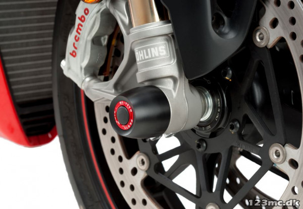 Puig foraksels beskyttelse. - Design PHB19 - Racing look samt beskyttelse - Komplet beskyttelse af forgaffel, Fælg og bremseskive - Produceret af en hård "Nylon" blok - Sælges som et sæt - Mål: Ø50mm, 40mm dybde - Design er som udgangspunkt sort - For at give et farvedesign skal der købes seperat "Puig aluniniumsringe PHB19", Passer til Yamaha MT-07 (18-20)