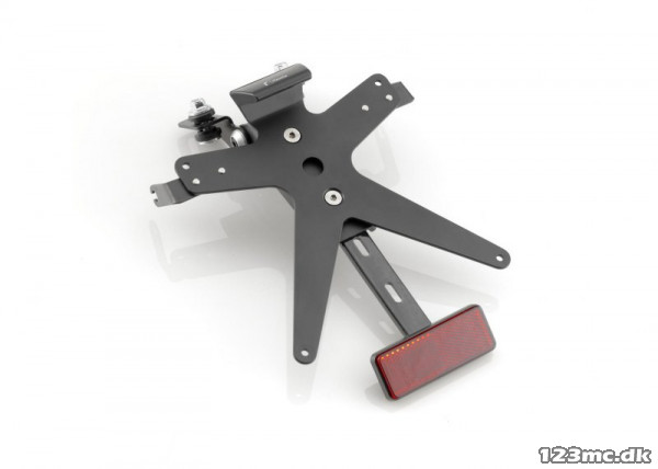 Nr. pladeholderne fra Rizoma er stilede og diskrete. Holderen er lavet i elokseret aluminium og er justerbar. Dertil medfølger et kraftigt SMD LED nr. pladelys, samt blinklysholdere til både OEM- og Rizoma blink.