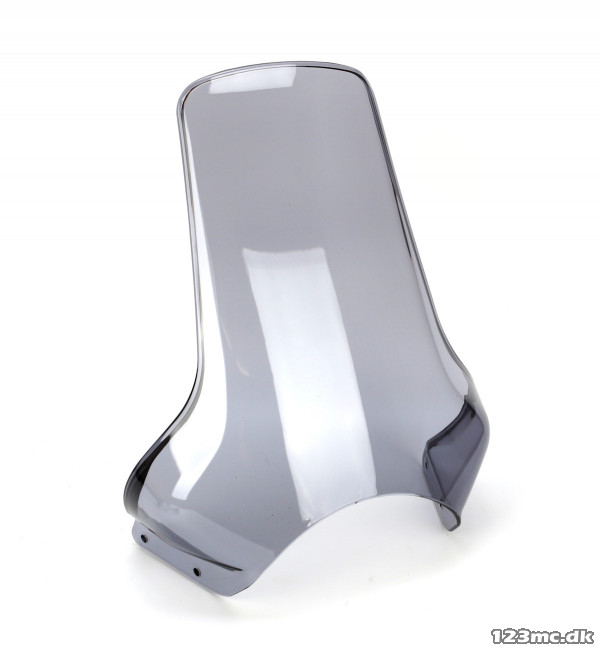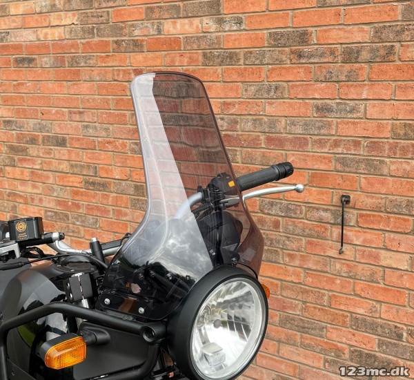 Vindskærmen har samme form som standardmodellen, men er forlænget med cirka 6 cm i højden. Den ekstra højde kan hjælpe med at reducere vindbuffeting og forbedre vindbeskyttelsen sammenlignet med den originale opsætning.