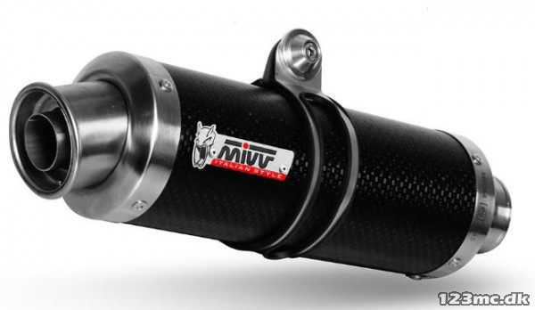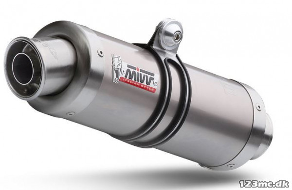 Lækker slip-on udstødning i rustfri fra Italienske Mivv. Udstødningen giver en lækker lyd samtidigt med at den vejer mindre den originale. Udstødningen er godkendt hvis db-killer og din originale katalysator er monteret.