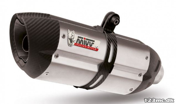 Her får du en lækker og ikonisk slip-on udstødning fra italienske Mivv. Denne udstødning giver en lækker lyd, samtidig med at den er E-godkendt, såfremt din originale Suzuki katalysator og dB-killeren er monteret (dB-killer er monteret fra fabrikken, men kan nemt bores ud, såfremt man ønsker et åbent system)