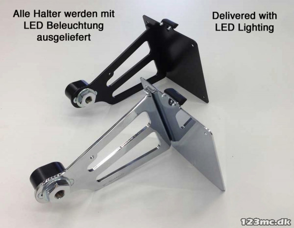 TUV godkendt, sidehængt nr. pladeholder. Med nr. pladelys. Bike-Shoppen Anbefaler, Passer til Suzuki VS 600 / 800 Intruder