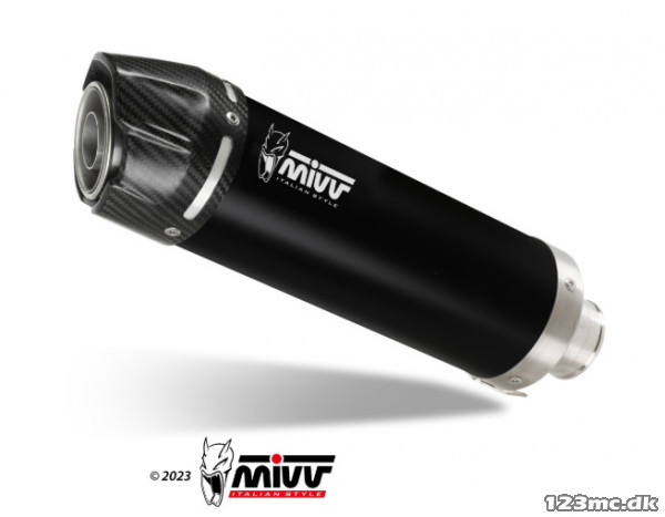 Udstødningen leveres med sort rustfri stålkrop og et eksklusivt endestykke i kulfiber, som giver et sporty og let udtryk.