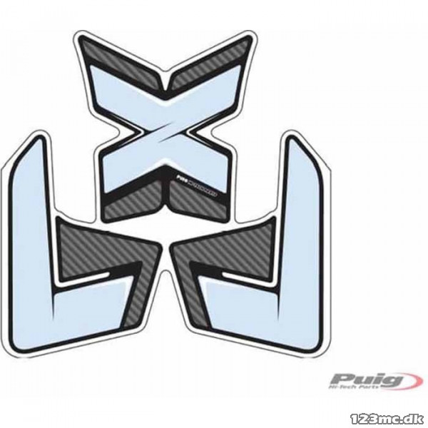 Puig Tank Pad X-Treme med ekstra beskytter til siden af tanken. Beskytter på siden sikrer bedre greb. Tank Pad er i klar udførsel - OEM farve på tank kan ses - med Carbon look kant. MT-07 Tracer 16-, Passer til Yamaha MT-07 Tracer (16->)