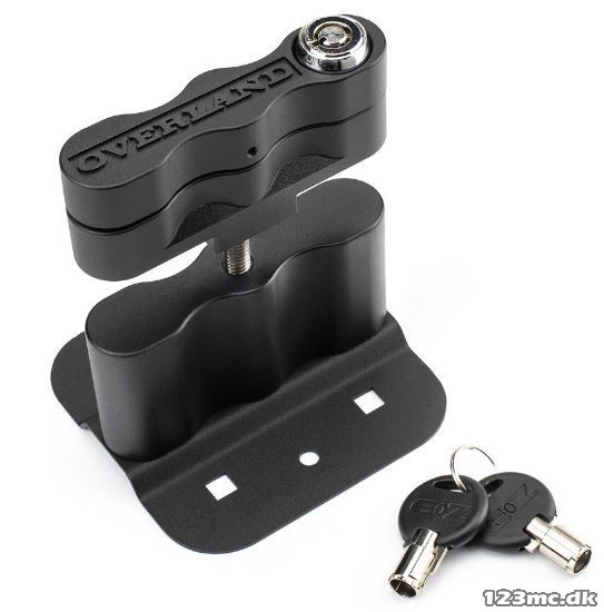 Overland holder med lås til brug i forbindelse med vand/benzindunke. Denne Overland holder monteres direkte på Kriegas OS platform, og gør det muligt at montere en vand- eller benzindunk direkte på platformen. Holderen kommer med 2 sæt nøgler, så man kan låse dunkene fast på cyklen. Passer til Yamaha Ténéré 700 (19-24)