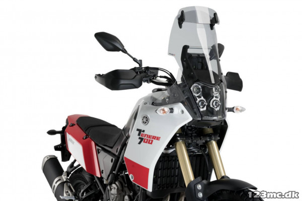 Effektiv touring vindskærm fra Puig til Ténéré 700. Vindskærmen giver bedre beskyttelse mod vinden og mindsker turbolens.