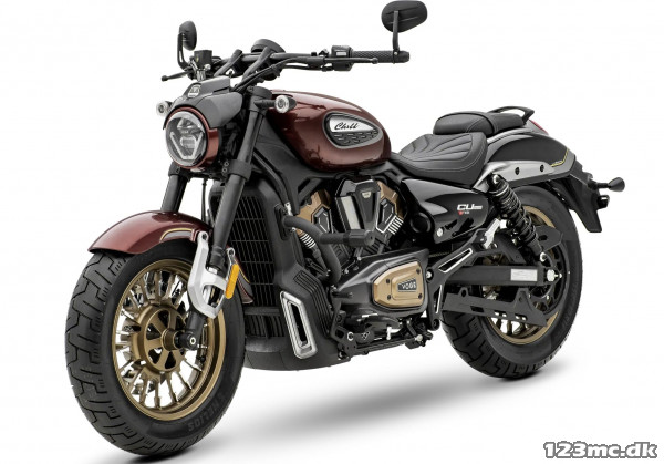 VOGE CU625 har et kraftfuldt og karakterfuldt retro-inspireret design med lavt, afslappet stel, bredt drag-bar styr og styrende spejle, som giver et autentisk cruiser-look. De mørke mekaniske detaljer og den markante firekantede udstødning (ikke som vist på billederne i EU) styrker den muskuløse, klassiske fremtoning.