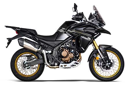 Chassiset består af en stålrørsram med aftagelig bageste subframe, hvilket giver stabilitet og robusthed både på asfalterede veje og i mere krævende terræn. Motorcyklen er udstyret med egerhjul på 19 tommer foran og 17 tommer bagtil samt justerbar Kayaba-affjedring, som sikrer en komfortabel og kontrolleret kørsel – også på ujævnt underlag.