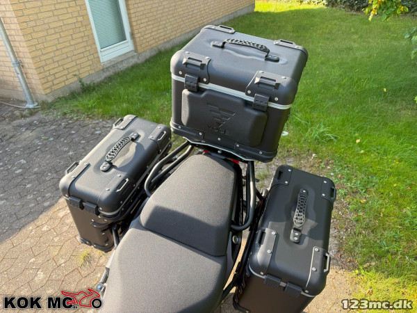 Denne Voge DS625X har vi udstyret med følgende ekstraudstyr: Original Voge topboks beslag, Original Voge alu. topboks, Original Voge sidetaske beslag og Original Voge alu. sidetasker