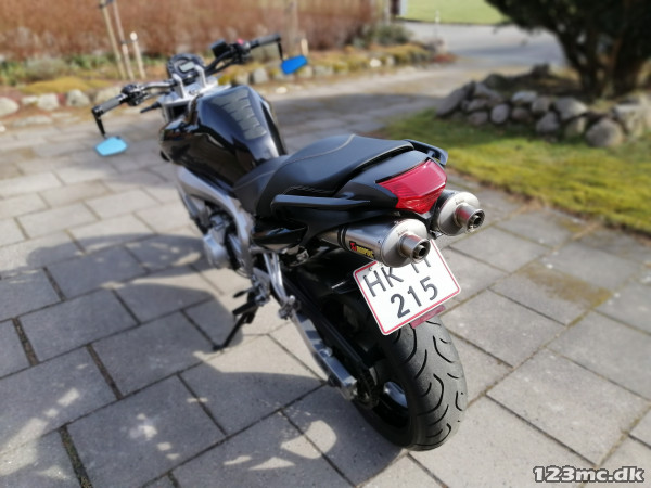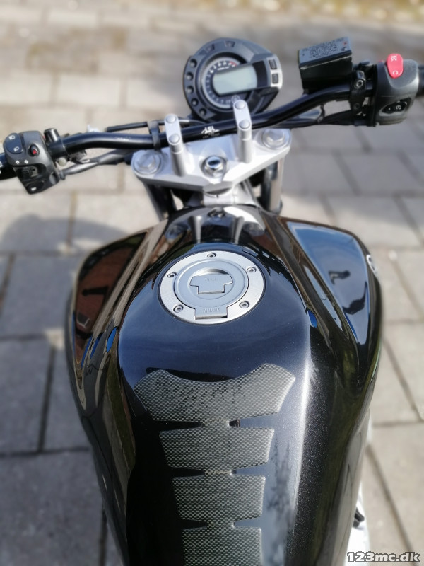 Nysynet Yamaha FZ6 fra 2008, kørt 36000 km. Den er optimeret med nyt styr og greb, nye blinklys, nyt sæde, nye sidespejle og Akrapovic udstødning.