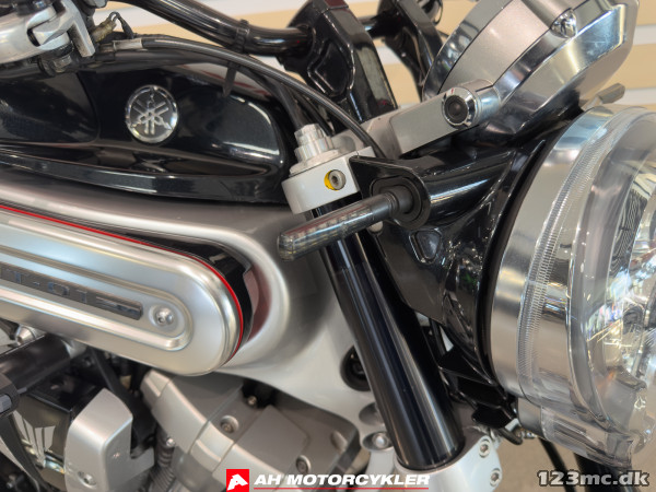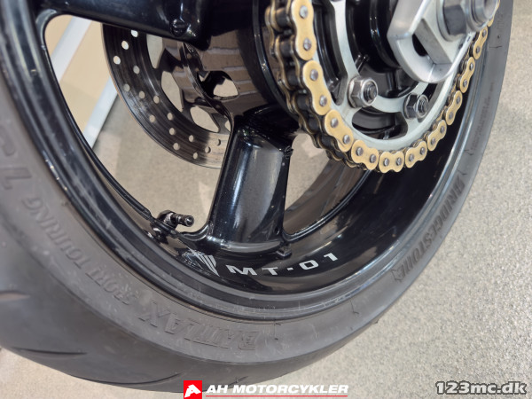 Designet er lige så markant som motoren. Den brede tank, de muskuløse linjer og den karakteristiske dobbeltudstødning under sædet gør MT‑01 til en motorcykel, der får opmærksomhed overalt. Og den sportslige platform er ikke bare for syns skyld – den er bygget på et aluminium CF-diecast stel med en R1‑type svingarm, kraftige upside‑down forgafler og radialmonterede kalipere på de store 320 mm dobbeltskiver foran. Det giver en stabil og kontant kørefølelse, der står i skarp kontrast til motorens dybe cruiser‑agtige puls.