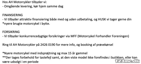 Ring til AH Motorcykler på 2426 0190 for mere info, og booking af prøvekørsel