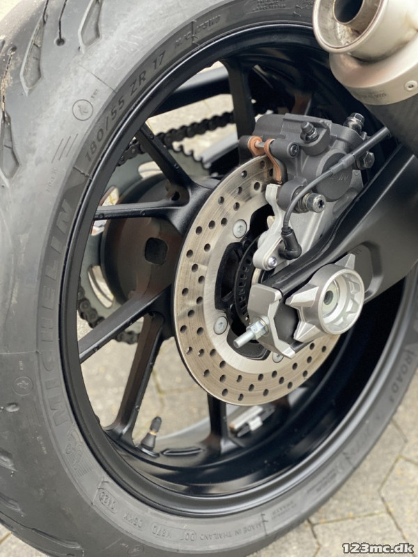 Bag: 180/55ZR17 på 5,50" alufælg.