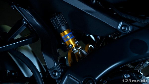• Öhlins-bagdæmperen er udstyret med fjernbetjent justering af fjederforspænding
