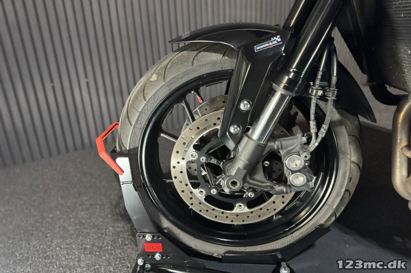 ABS bremser, kørecomputer, gearindikator, titanium udstødning, indsprøjtning, halvkåbe, tonet/farvet kåbeglas, vindskærm, quickshift, tankbeskytter