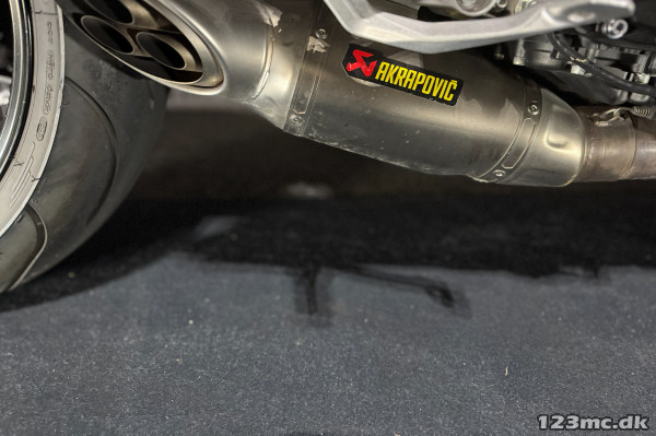 Monteret med original Akrapovic udstødning. Der medfølger den orignale udstødning også. Puig black vindskærm.