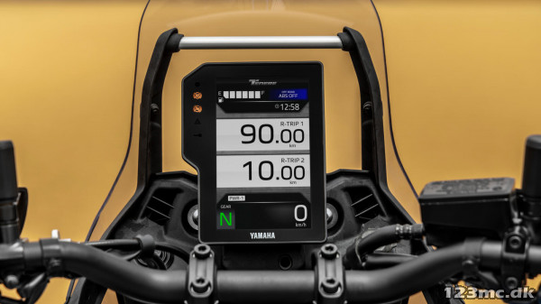 Med en dominerende sadelhøjde på 910 mm giver Ténéré 700 Rally's nye sæde, nydesignede tank og ændrede koblingsdæksel dig større fleksibilitet, så du kan bevæge dig frit rundt offroad. Cockpittet har ny 6,3" TFT-instrumentering, som leveres med et unikt "Raid"-layout, der kun præsenterer de mest relevante oplysninger, du har brug for, når du tager ud i det mest udfordrende terræn. Den vises i stil med en rally roadbook og er en af tre display layouts og blot en af de måder, hvorpå du kan tilpasse din køreoplevelse til forholdene.