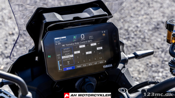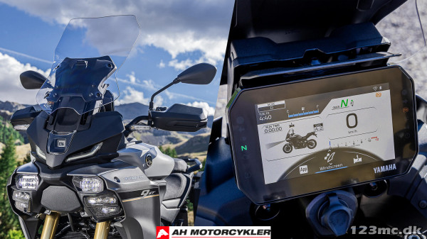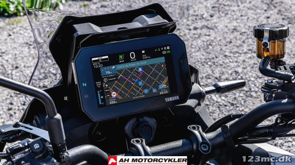 7" TFT har tre temaer og leveres med Garmin LinkBox-tilslutningsmuligheder for at give integreret navigation, mens samtaler, beskeder og musik kan modtages via Yamaha MyRide-appen og styres ved hjælp af 5-vejs joysticket på venstre kontaktenhed.