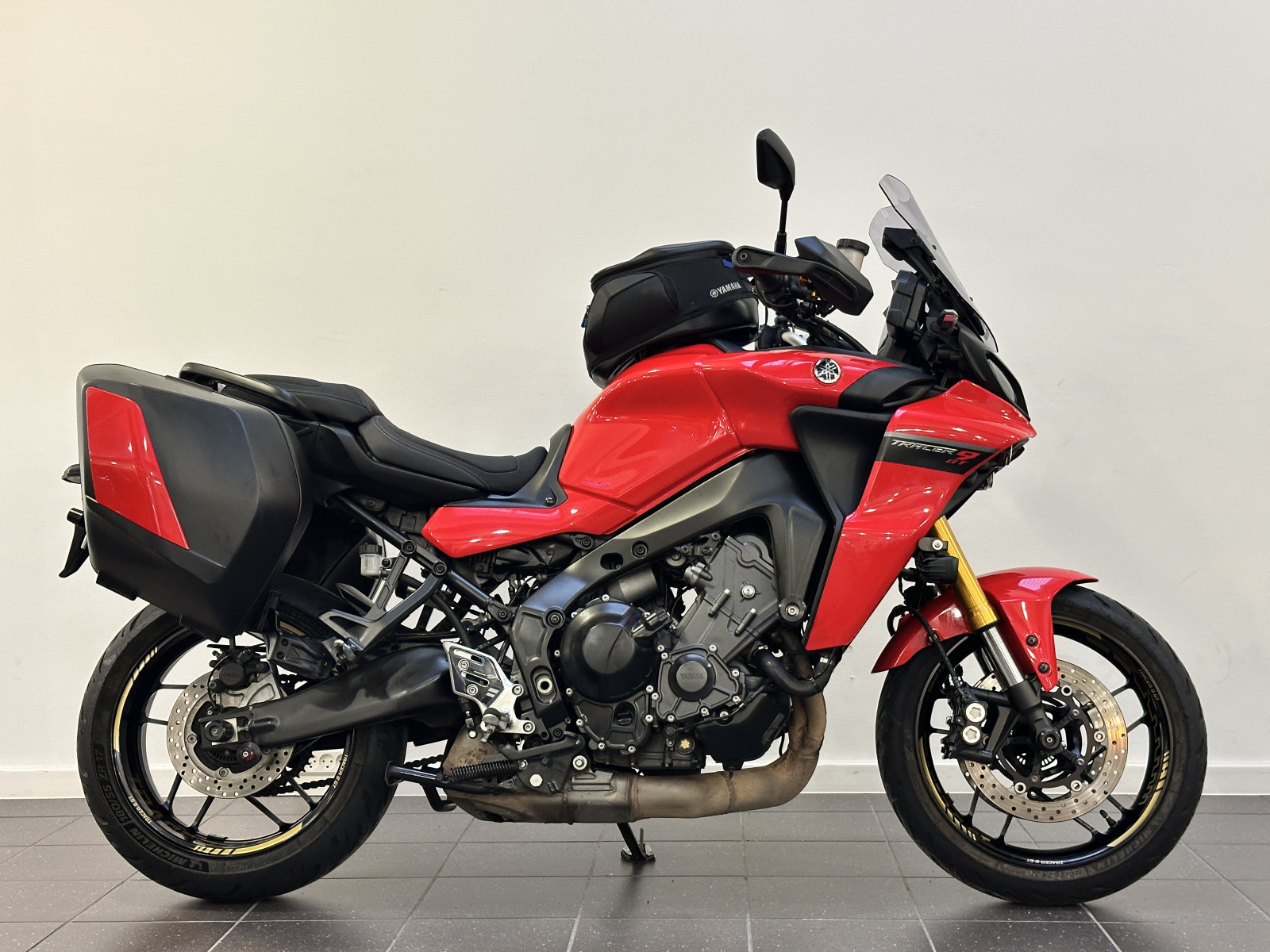 Yamaha Tracer 9 GT -- Farve: Rød -- Sags nr. 10548 -- Denne motorcykel har alt i udstyr: ¤ Elektrisk affjedring ¤ Fartpilot ¤ Justerbar vindskærm ¤ Justérbare greb ¤ Komfort sæder med varme ¤ Køremodes ¤ LED Blinklys ¤ LED Tågelys ¤ LED baglygte ¤ LED forlygte ¤ Originale sidetasker ¤ Quickshift ¤ Sædevarme ¤ BEMÆRK: Fabriksgaranti til 02.07.2026