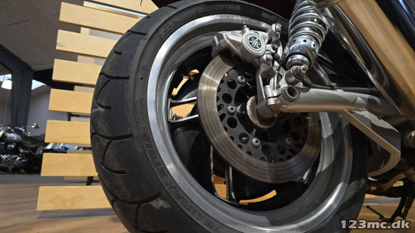 Motorcyklen er monteret med en anden bagfælg, som er godkendt og korrekt indført i motorregisteret. En opgradering der fuldender det markante udtryk og er udført helt efter bogen.