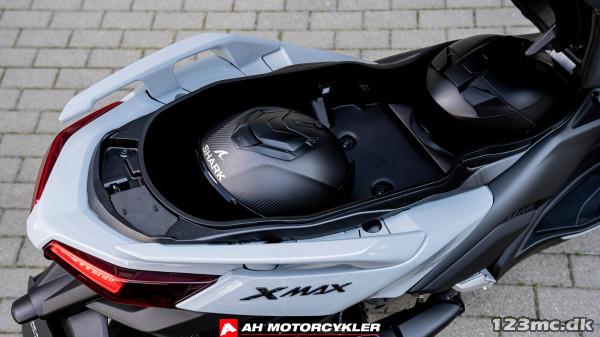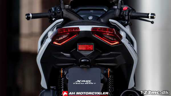Ud over de specialfarvede kåbedele, aluminiumsfodpladerne og et særligt sæde har XMAX 300 Tech MAX+ også en lettere lyddæmper med en finish i høj kvalitet – samt et USB-stik i det forreste rum til strømforsyning af dine enheder. Og for øget synlighed er den forsynet med katastrofeopbremsningssignal.