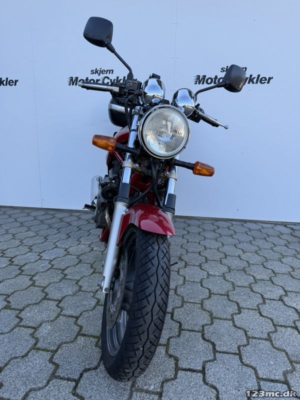 Omdrejningsvillig motor med power i toppen. God lys i lygten. Stopper hurtigt også selv om den er uden ABS. Langt på literen. Billig MC som brugt.