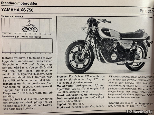 Bemærk, at det er muligt at sammenligne modeloplysninger for Yamaha XS 750 med din egen MC, hvis du opretter den i din brugerprofil under "Primær MC".
