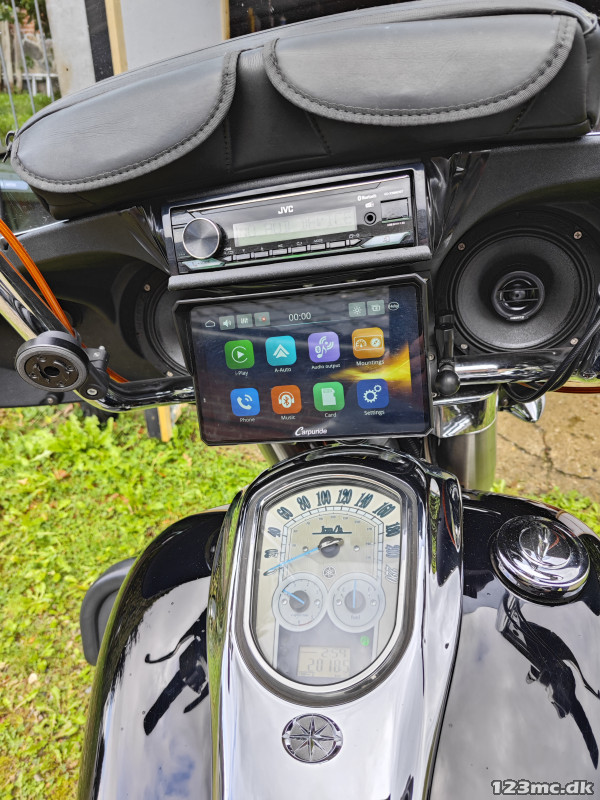 Det originale anlæg er blevet voldsomt opgraderet, med bla. Trådløs Android Auto, Hertz højttalere fra deres spl serie udviklet til brug på mc og atv.
