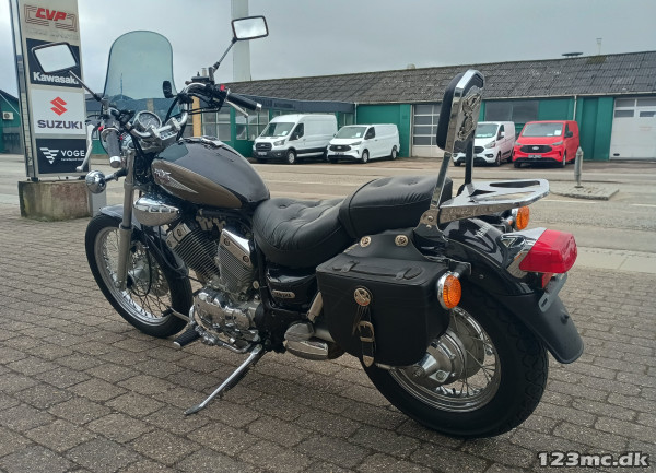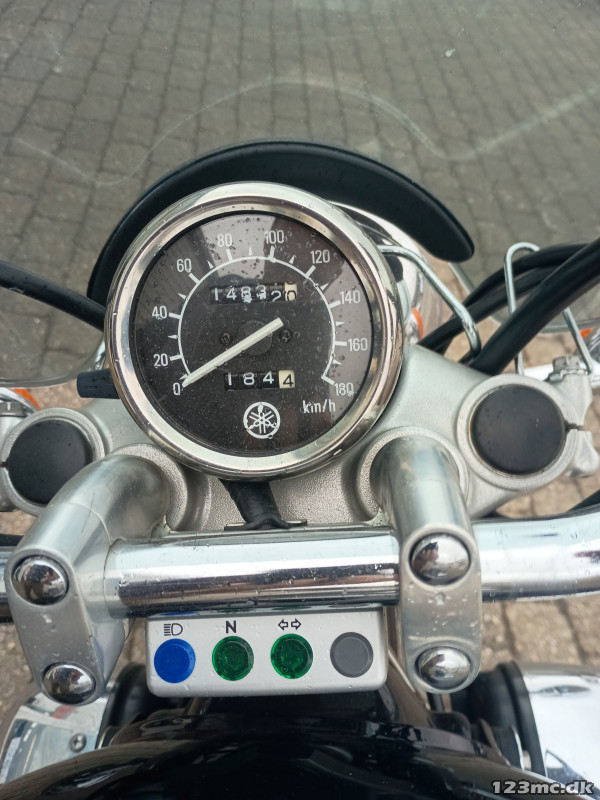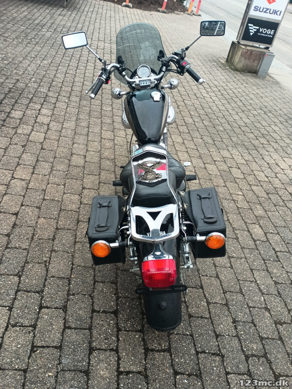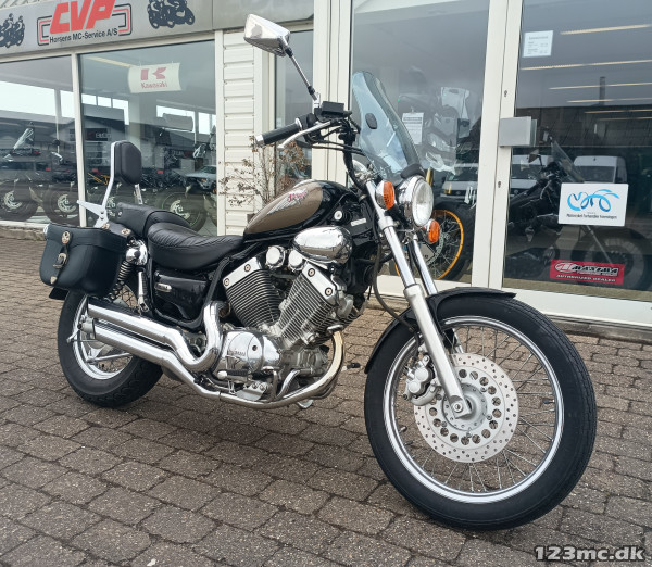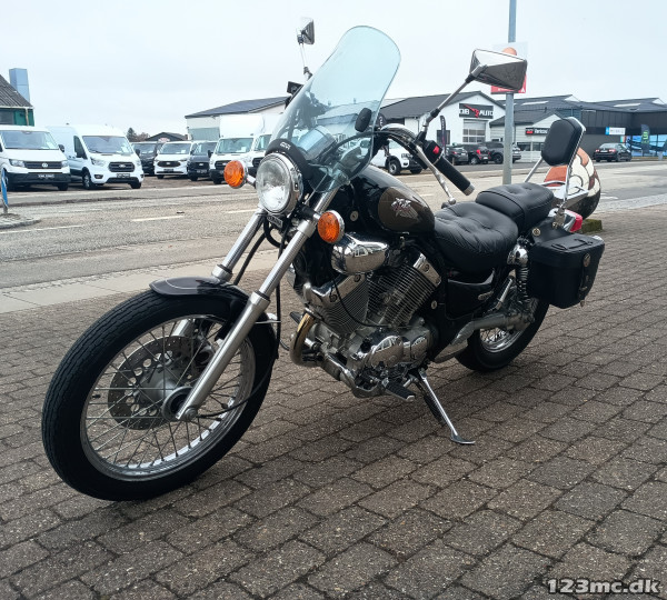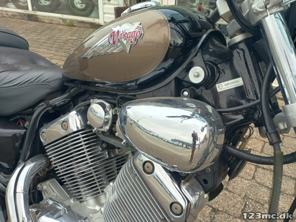 Yderst velholdt Virago, der står flot i lak og chrom.