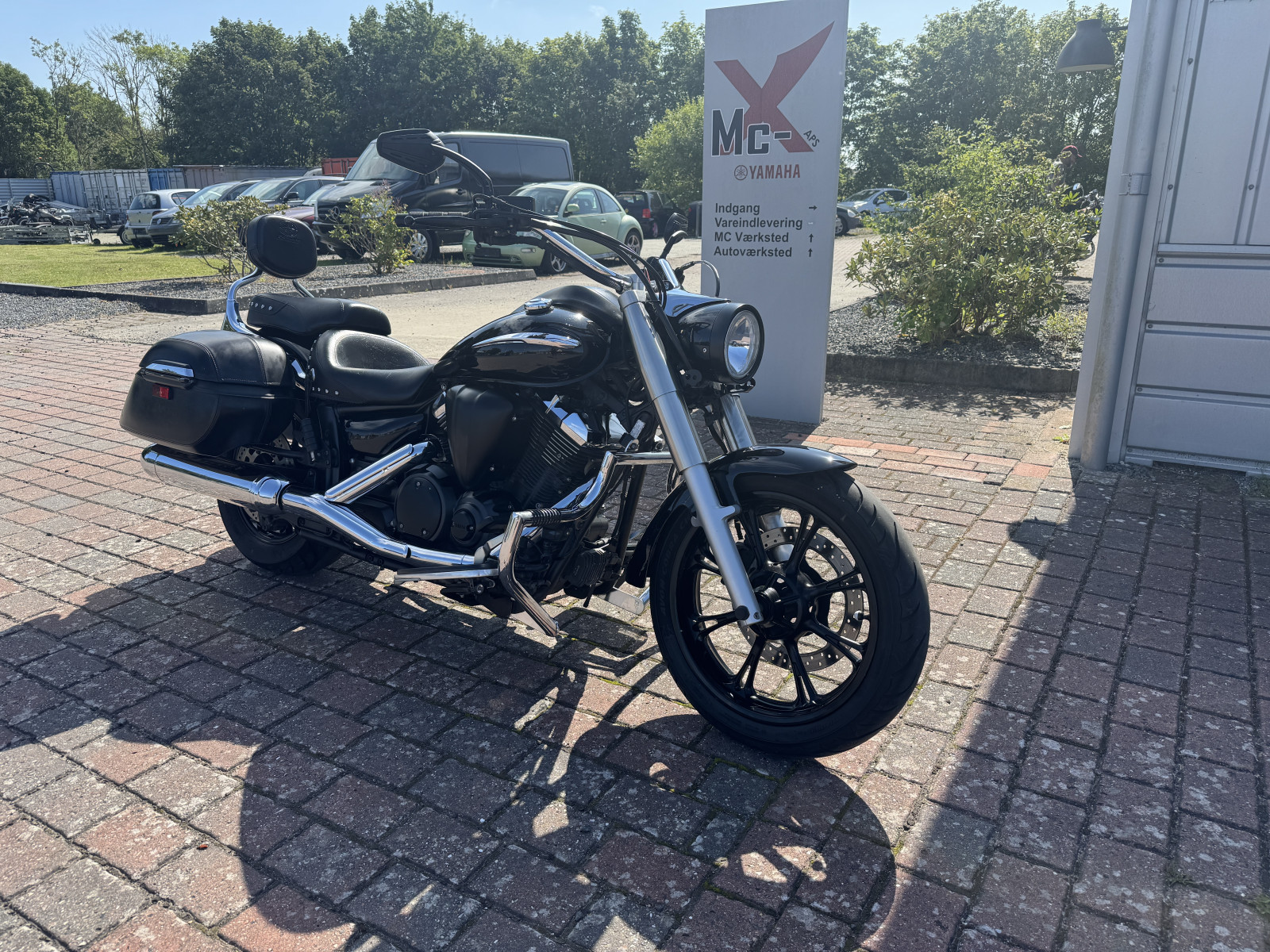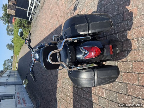 indsprøjtning, motorbøjle, mustang sæder, Remtræk, fodplader, lev. nysynet, sidetasker, led blink, Sizzybar, malet i black out, fedt look reg i 2014