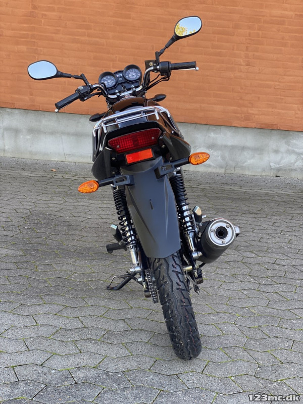 Da det er en 125'er kommer man ikke meget over 80-90'stykker, hvis man kører lige ud og der er lidt modvind. Den har smalle dæk og det skal man være opmærksom på, især hvis det er lidt vådt på vejen.