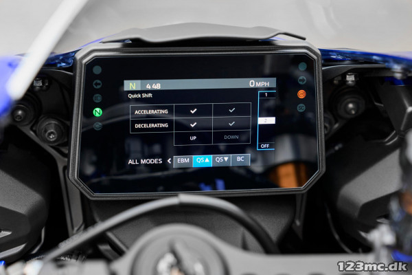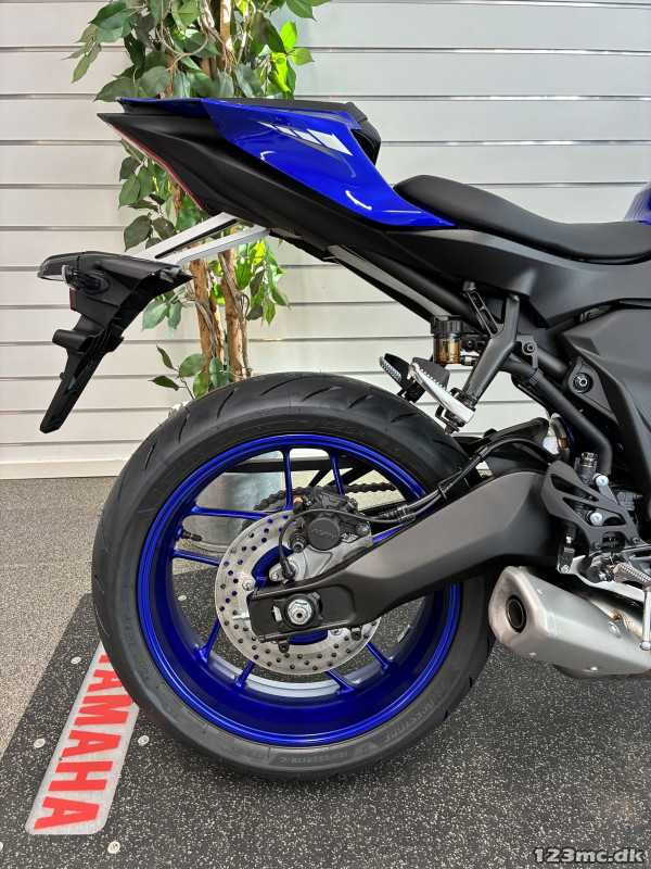 R7 forener den roste 689 cc CP2-motor med avanceret elektronik fra R1, såsom 6-akset IMU, YCC-T og YRC-kørselstrin. Sammen med det finjusterede stel og den smidige køredynamik skaber den en velafbalanceret Supersport-oplevelse, der gør ægte performance tilgængelig for alle.
